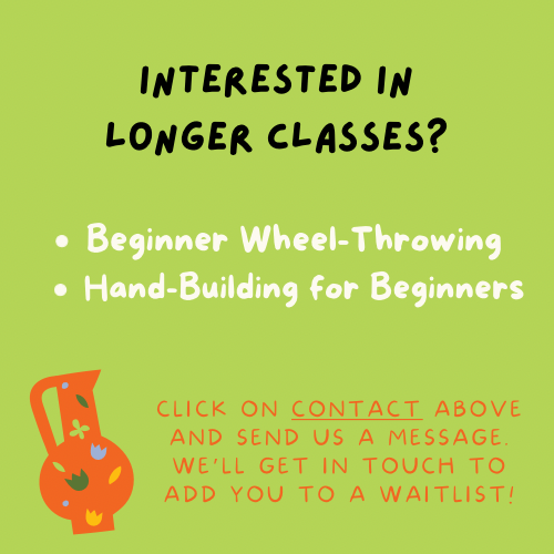 If you're ready to commit to longer pottery courses, send us a message through the contact tab. We'll get in touch and add you to a waitlist!